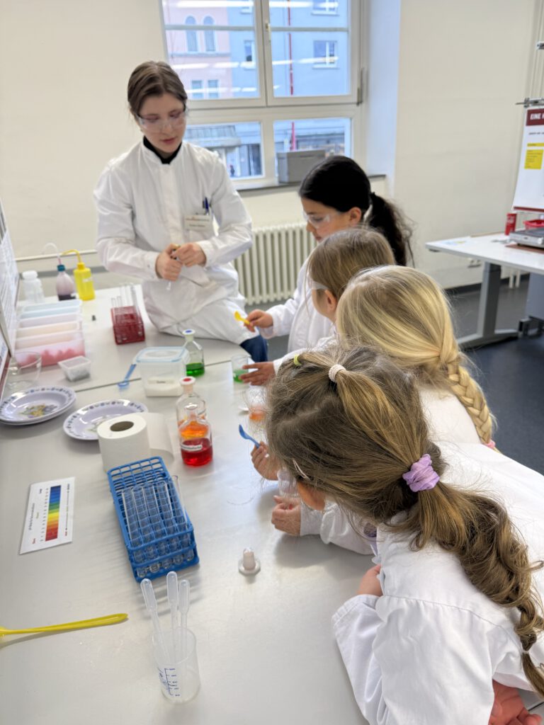 Das Besondere an den Experimenten war, dass ausschließlich Haushaltsmaterialien verwendet wurden. So experimentierten die Schülerinnen und Schüler unter anderem mit Backpulver, Essig, Lebensmittelfarben und weiteren alltäglichen Stoffen. Dabei staunten sie nicht schlecht, wie viel Chemie in ganz gewöhnlichen Dingen steckt.