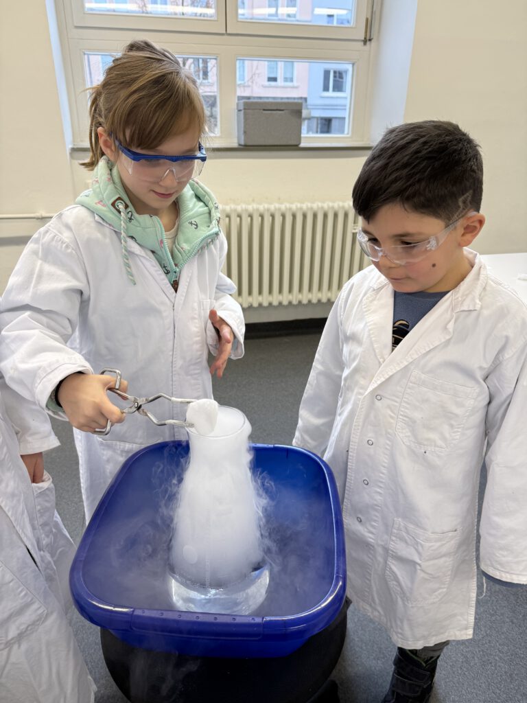 Mit großer Begeisterung wurde gemischt, geschüttelt und beobachtet. Die Kinder arbeiteten neugierig und konzentriert und halfen sich gegenseitig. Besonders stolz waren sie darauf, dass sie einige ihrer Experimentergebnisse sogar mit nach Hause nehmen durften.