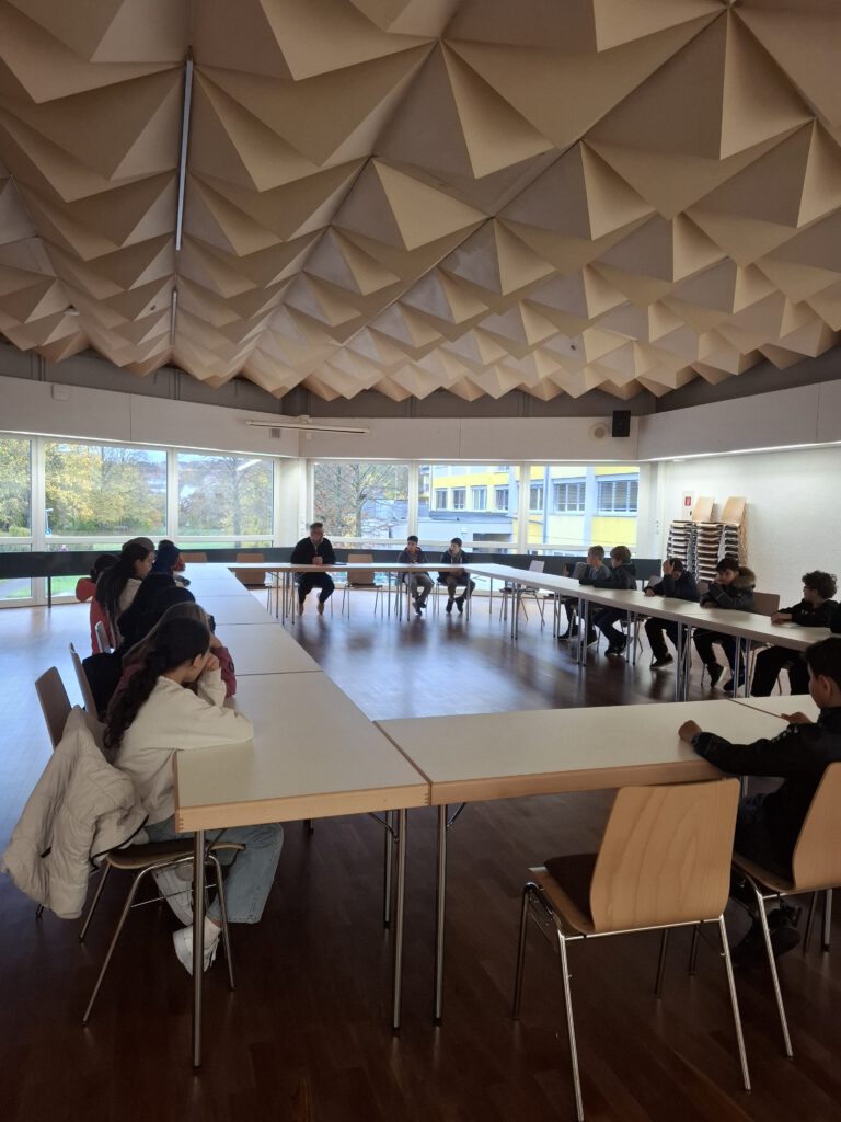 In einer Klassenratsitzung hat Emilian L. aus der 4c den anderen Kindern von seiner Angst die Hauptstraße in Ruttershausen auf seinem Schulweg zu überqueren, erzählt. Daraufhin hat er einen Brief an Herrn Dort geschrieben und ihm vorgeschlagen in Ruttershausen eine 30er Zone, einen Zebrastreifen oder eine Ampel zu bauen. Wir haben den Brief dann unterschrieben. Am 3.11.2025 wurden wir vom Bürgermeister, Jan-Erik Dort, zu einem Gespräch ins Rathaus eingeladen. Dafür sind wir vom Platz Brassac zum Rathaus hochgelaufen und in einen Besprechungsraum gegangen. Dort haben wir über den Brief gesprochen und Herr Dort hat uns erklärt, wie kompliziert es ist einen Zebrastreifen zu machen. Eine 30er Zone findet er aber auch gut und er will den Brief seinen Kollegen zeigen. Dann haben wir ihm noch viele interessante Fragen gestellt. Zum Beispiel: Ist die Kandidatin, die damals auch zur Wahl stand, deine Freundin oder Feindin? Mit den vielen Fragen ging die zweite Stunde schnell rum und dann sind wir wieder zurück in die Klasse gelaufen.