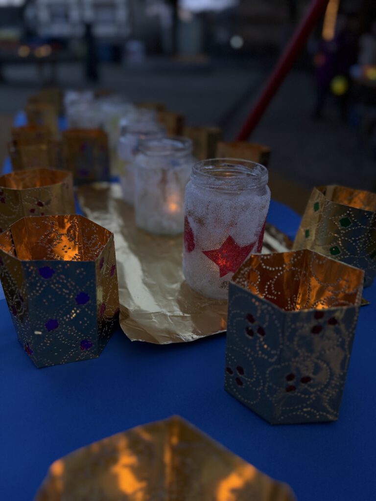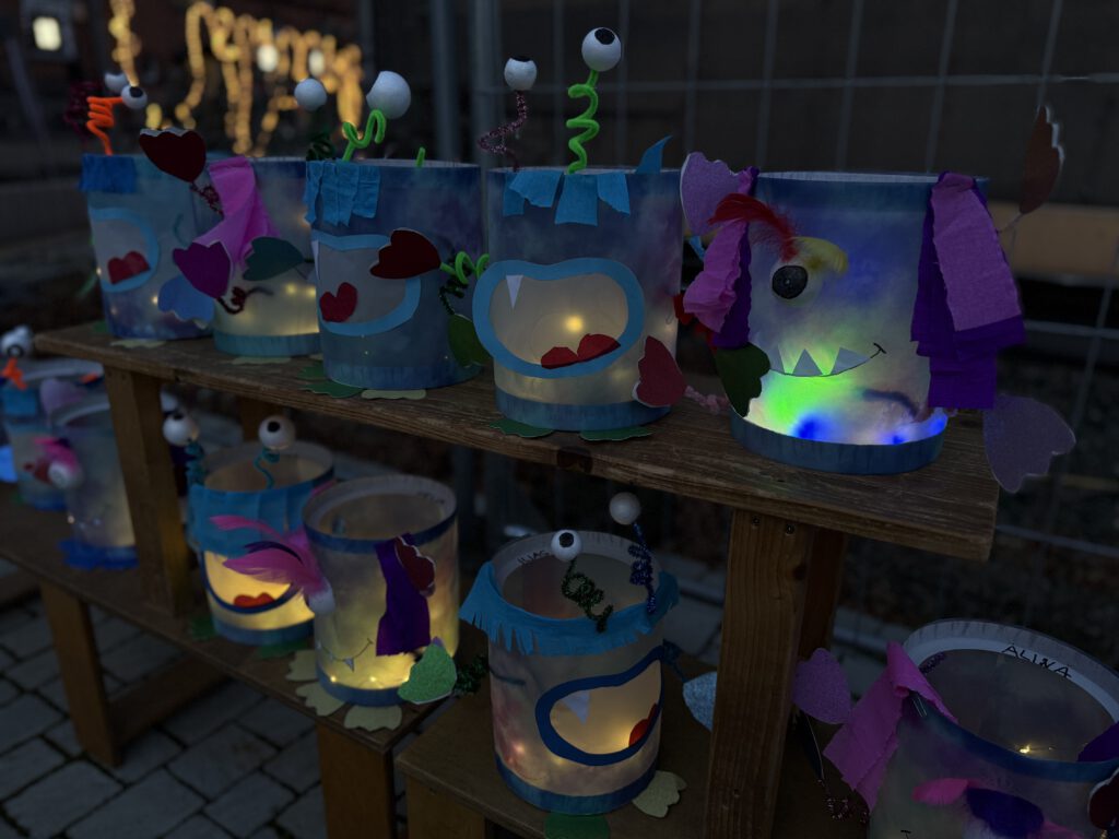 In Kooperation mit der Musikschule Busecker Tal begann die Veranstaltung um 16.30 Uhr mit einem stimmungsvollen weihnachtlichen Konzert in der Sporthalle. Die Schülerinnen und Schüler sorgten mit ihren musikalischen Beiträgen für eine festliche Atmosphäre und stimmten das Publikum auf den Abend ein. Um 17 Uhr wurde das Lichterfest auf dem Schulhof der Bunten Schule mit dem gemeinsamen Singen von Weihnachtsliedern eröffnet. Zahlreiche Kinder, Eltern und Verwandte versammelten sich, um die liebevoll gebastelten Laternen der Kinder zu bestaunen, die den Schulhof in ein warmes Lichtermeer tauchten. Für das leibliche Wohl war ebenfalls bestens gesorgt: Würstchen, Brezeln und Börek sowie verschiedene warme Getränke luden zum Verweilen ein. So konnten Groß und Klein gemeinsam die vorweihnachtliche Stimmung genießen und einen gelungenen Abend verbringen.